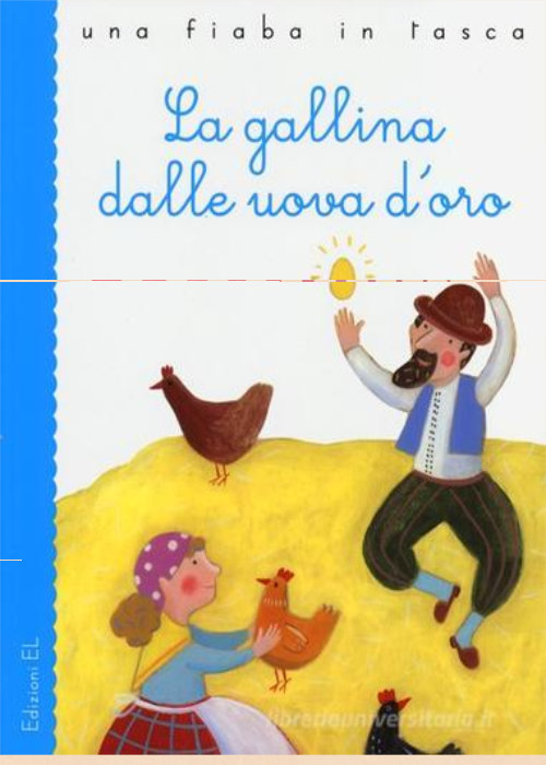 La proverbiale storia della straordinaria gallina che faceva un uovo d’oro al giorno: l’avido contadino dopo qualche tempo non si accontentò più dell’unico uovo che la gallina puntualmente gli sfornava e decise così di ucciderla e tirar fuori dalla sua pancia tutto l’oro in una volta sola. Ma scoprì subito che la prodigiosa gallina non era affatto diversa dalle altre e che dentro di lei non c’era dell’oro come aveva scioccamente immaginato. E per non essersi accontentato del poco che aveva, restò senza nulla. Età di lettura: da 4 anni.
